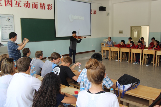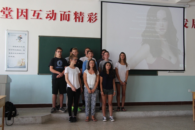 7月13日,我校迎來了來自大洋彼岸的客人——美國加州雷丁市大學預備學校的師生們。美國加州雷丁市大學預備中學的師生組成的訪問團前來我校參觀交流。訪問團一行共有13人,從7月13日至15日,在我校進行為期三天的文化交流活動。