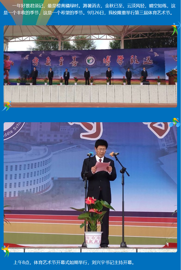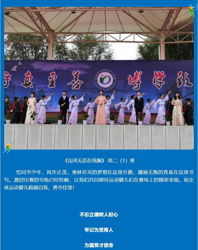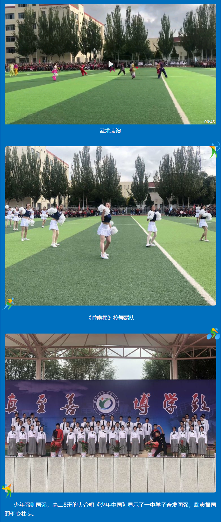 【第三屆體育藝術節(jié)】定西市第一中學第三屆體育藝術節(jié)隆重開幕 時間:2020-09-26 分類:體藝風采 美篇鏈接 分享: 上一個: 【第二屆體育藝術節(jié)】我校喜迎新中國成立70周年暨第二屆校園體育藝術節(jié)圓滿閉幕 下一個: 【第三屆體育藝術節(jié)】定西市第一中學第三屆體育藝術節(jié)作品展 相關文章 青春綻放,心向未來——我校第八屆校園體育藝術節(jié)圓滿閉幕 定西市第一中學第八屆體育藝術節(jié):運動與藝術的雙向奔赴 燃情九月,逐夢賽場——定西市第一中學第八屆體育藝術節(jié)盛大開幕 喜報!定西一中男女排雙雙奪冠 燃爆賽場!我校四支代表隊勇奪市級選拔賽雙冠王,男籃三人制摘銀! 球場爭鋒展風采,乘風破浪鑄師魂——我校舉辦教職工籃球和氣排球比賽 【“三抓三促”行動進行時】金秋迎重陽,快樂健康行——定西市第一中學開展重陽節(jié)登山比賽活動 【“三抓三促”行動進行時】以青春之花,結奮斗之果——我校文藝匯演暨第七屆校園體育藝術節(jié)圓滿閉幕