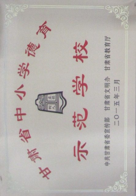 2015年3月,我校被中共甘肅省委宣傳部、甘肅省文明辦、甘肅省教育廳命名為“甘肅省中小學德育示范學校”。