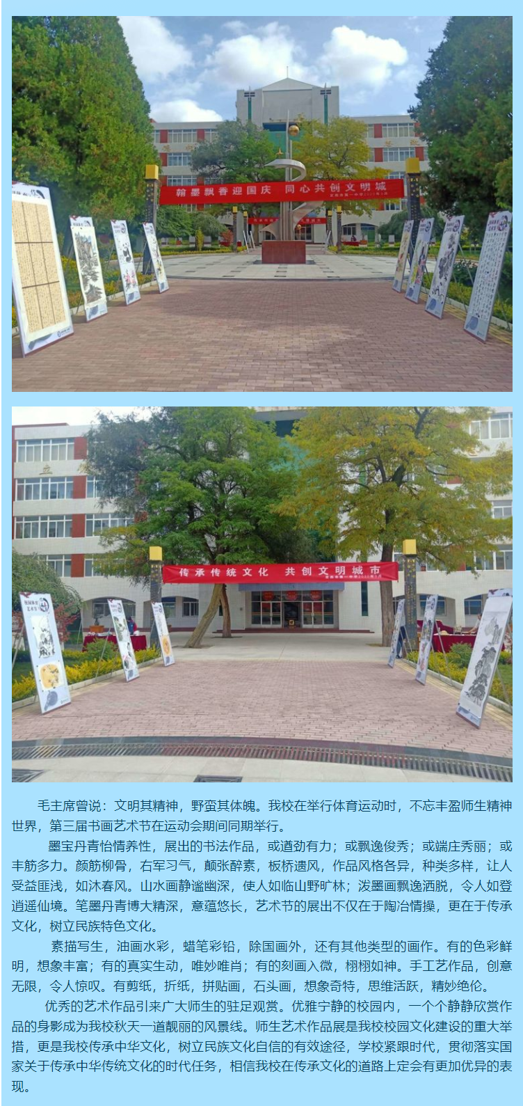 【第三屆體育藝術節】定西市第一中學第三屆體育藝術節作品展 時間:2020-09-27 分類:體藝風采 美篇鏈接 分享: 上一個: 【第三屆體育藝術節】定西市第一中學第三屆體育藝術節隆重開幕 下一個: 【第三屆體育藝術節】定西市第一中學第三屆體育藝術節圓滿閉幕 相關文章 青春綻放,心向未來——我校第八屆校園體育藝術節圓滿閉幕 定西市第一中學第八屆體育藝術節:運動與藝術的雙向奔赴 燃情九月,逐夢賽場——定西市第一中學第八屆體育藝術節盛大開幕 喜報!定西一中男女排雙雙奪冠 燃爆賽場!我校四支代表隊勇奪市級選拔賽雙冠王,男籃三人制摘銀! 球場爭鋒展風采,乘風破浪鑄師魂——我校舉辦教職工籃球和氣排球比賽 【“三抓三促”行動進行時】金秋迎重陽,快樂健康行——定西市第一中學開展重陽節登山比賽活動 【“三抓三促”行動進行時】以青春之花,結奮斗之果——我校文藝匯演暨第七屆校園體育藝術節圓滿閉幕