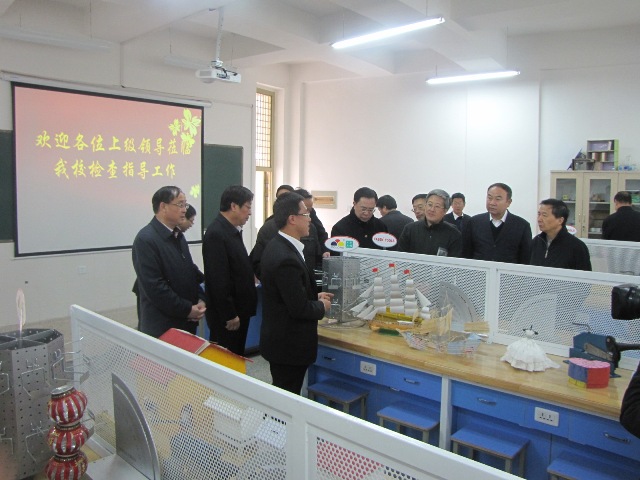 在通用技術(shù)實(shí)驗(yàn)室,調(diào)研組一行向任課教師李曉剛詳細(xì)詢問通用技術(shù)課程的設(shè)置開設(shè)情況,認(rèn)真觀察學(xué)生的手工作品,了解學(xué)生手工作品的原料以及制作。在學(xué)術(shù)報(bào)告廳,調(diào)研組詳細(xì)了解我校報(bào)告廳的建設(shè)情況,使用情況和音響效果。