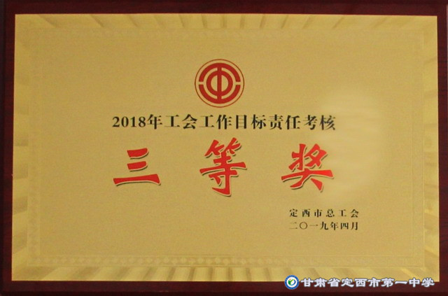 2018年工會工作目標責任考核三等獎 時間:2019-05-09 分類:學校榮譽 在2018年工會工作目標責任考核中,我校被定西市總工會評為“三等獎”。 分享: 上一個: 模范教職工小家 下一個: 西北工業(yè)大學授予我校“優(yōu)質(zhì)生源基地”稱號 相關文章 喜訊:定西市第一中學榮獲山東大學“2025年本科生源貢獻獎” 西北工業(yè)大學授予我校“優(yōu)質(zhì)生源基地”稱號 模范教職工小家 甘肅省文明校園 定西市教育質(zhì)量振興獎 2017年度社會治安綜合治理工作“先進集體” 2017年市級“職工書屋”示范點 甘肅省優(yōu)秀中小學優(yōu)秀網(wǎng)站