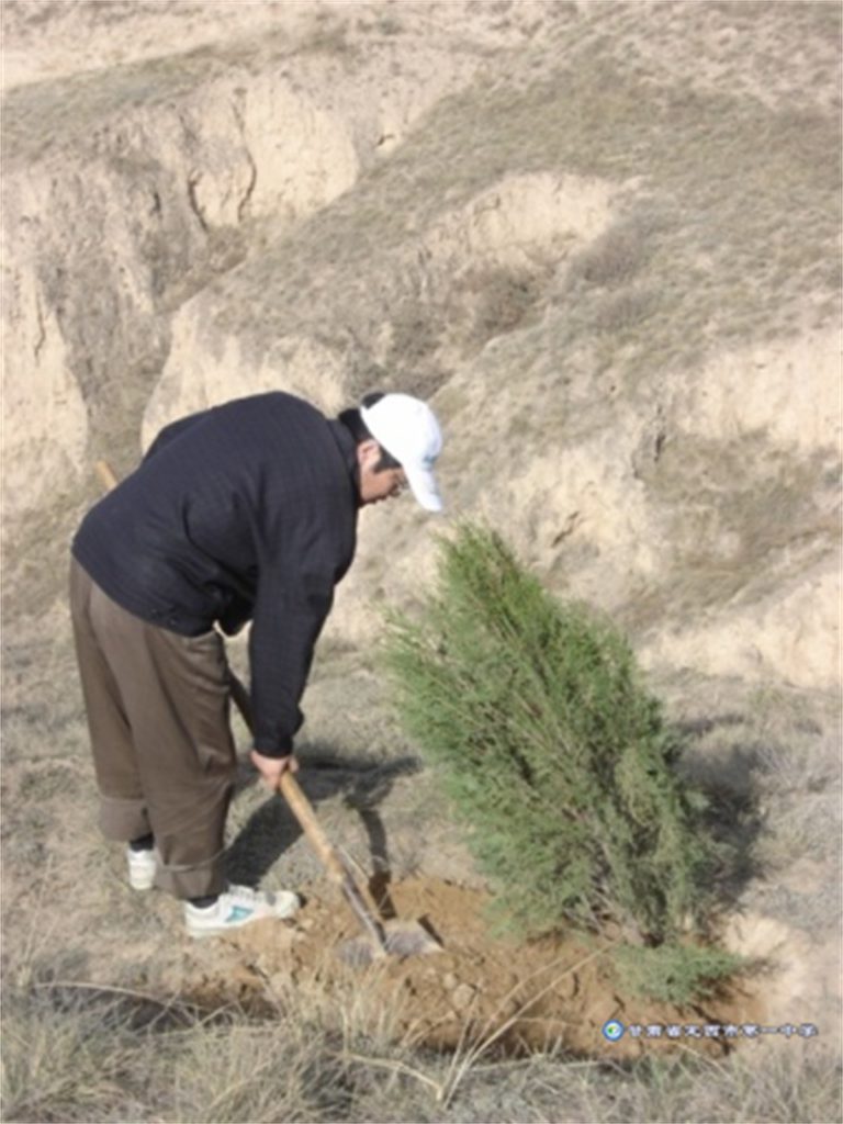 ?在整個植樹過程中,廣大師生們面對荒山禿嶺,面對日夜廝守的黃土地,熱情高昂,不怕臟、不怕累,積極主動,協同作戰,在一天的時間里,共種植了近千株柏樹苗,大部分同學超額完成了任務。看到整整齊齊的柏樹苗,同學們的臉上都露出了甜甜的笑容。