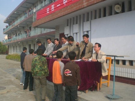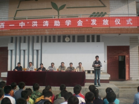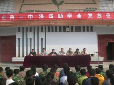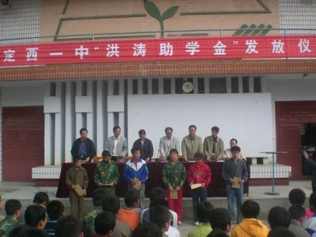“洪濤助學(xué)金”是由蘭州中和房地產(chǎn)開(kāi)發(fā)有限公司總經(jīng)理洪濤先生提供的,資助對(duì)象為我校2007級(jí)學(xué)生,助學(xué)金總額為15萬(wàn)元,每年資助5萬(wàn)元,連續(xù)資助3年。發(fā)放儀式由學(xué)校政教處劉興宇主任主持。黨支部副書(shū)記宋淑華首先宣讀了《定西一中“洪濤助學(xué)金”獲助者考評(píng)選方案》。高一年級(jí)97名品學(xué)兼優(yōu)的貧困學(xué)生得到了5萬(wàn)元的資助。其中一等助學(xué)金獲得者16人,每人1000元;二等助學(xué)金獲得者32人,每人600元;三等助學(xué)金獲得者49人,每人300元。“洪濤助學(xué)金”的發(fā)放,使我校一批家庭貧困但成績(jī)優(yōu)異的高一新生在最需要幫助的時(shí)候,感受到了社會(huì)大家庭的溫暖和關(guān)愛(ài)。??????