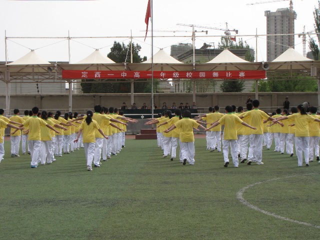 2014年5月26日下午,我?!暗谑粚眯@舞比賽”在田徑運動場成功舉行,高一年級1000多名學生參加比賽。學校領導和體音美教研組的部分教師擔任評委,為參賽班級評分。