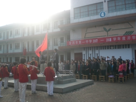 金秋九月,秋風送爽,全校師生滿懷成功的喜悅,憧憬美好的未來,迎來了又一個新的學年。 9月3日上午,定西一中上空五星紅旗冉冉升起,雄壯的國歌和悠揚的校歌在校園奏響。定西一中全體師生在學校4號教學樓前列隊集合,舉行了隆重的開學典禮。校長賈國江、副校長楊繼柏、張子恒、趙榮、黨支部副書記宋淑華、工會主席董萬福等學校領導和全校師生參加了典禮。開學典禮由副校長張子恒主持,會場氣氛熱烈而嚴肅。???? ?
