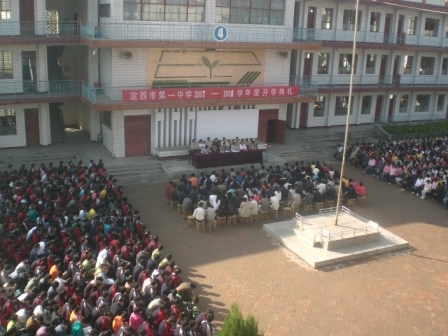 在開學典禮上,副校長楊繼柏宣讀了定西一中《關于表彰2006—2007學年度先進班級體、三好學生、優秀學生干部的決定》;政教處副主任張小兵宣讀了定西一中團委《關于表彰優秀團支部、優秀團員、優秀團干部和優秀學生會干部的決定》。學校領導向獲獎班級及個人頒發了獎狀和榮譽證書。高一年級新生代表武龍(安定區中考第一名)上臺發言,表達了一定要珍惜時光,遵守學校規章制度,勤奮學習,刻苦鉆研,不斷進步,在新學年里取得更大成績的決心和信心。最后,校長賈國江在典禮上作了重要講話,總結了上一學年的工作及取得的成績,用一個個鮮活生動的案例對全體學生特別是高一年級新生從學習、紀律等方面提出了明確具體的要求和目標,鼓勵同學們奮發圖強,展翅高飛,鑄就定西一中的輝煌明天。