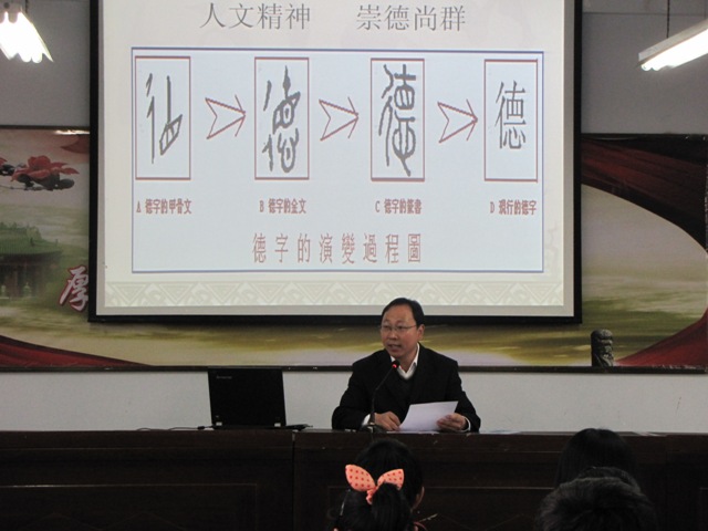 中華民族的傳統美德,一直是華夏兒女精神世界的支柱。道源于教育,德重在傳承。學校黨委安排部署,政教處具體實施的道德講堂活動,是學校德育工作的嶄新形式。通過身邊人講身邊事,身邊人說自己事,身邊事教身邊人,宣揚助人為樂、見義勇為、誠實守信、愛崗敬業、孝老愛親的道德品質。道德講堂在營造 “積小德為大德,積小善為大善”的良好風氣的同時,將會不斷提升廣大師生的道德素養,引導我校更多的師生成為道德的傳播者和實踐者。