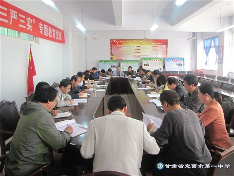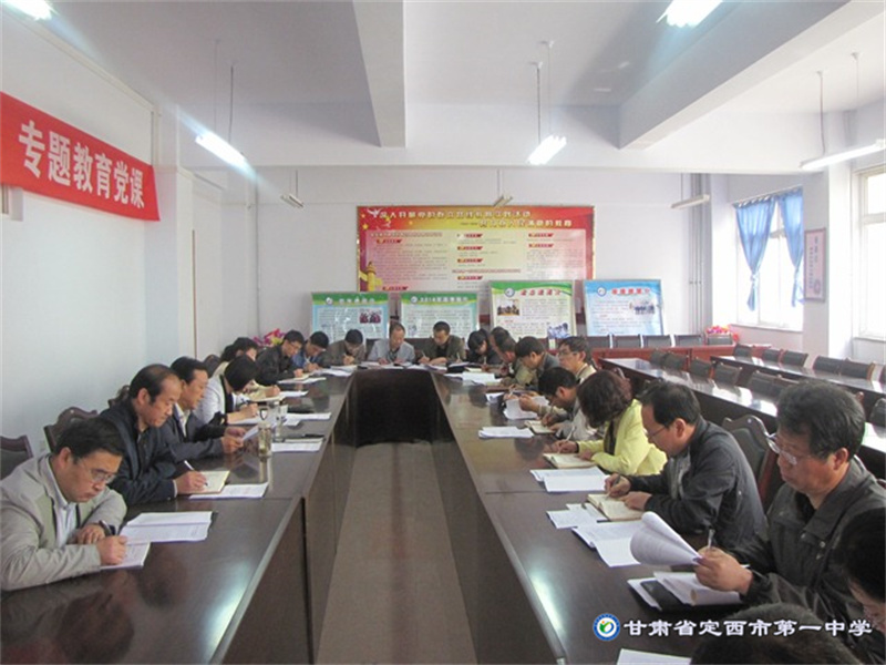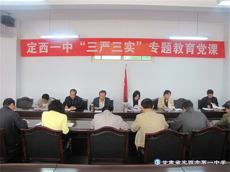 ? 5月22日,我校黨委召開“三嚴(yán)三實”專題教育黨課暨啟動會,黨委書記張東銳作專題黨課輔導(dǎo),黨委副書記、紀(jì)委書記趙惠琴傳達《定西市第一中學(xué)關(guān)于在縣處級領(lǐng)導(dǎo)干部中開展“三嚴(yán)三實”專題教育的實施方案》和《關(guān)于成立定西市第一中學(xué)“三嚴(yán)三實”專題教育工作協(xié)調(diào)小組的通知》,會議由校黨副委書記、校長盛淑蘭主持。 學(xué)校校級領(lǐng)導(dǎo)、中層干部、年級主任、各黨支部書記、工青婦負責(zé)人參加啟動會。