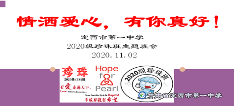 2020年11月2日,定西市第一中學2020級華保宏星王玉環團隊珍珠班召開“情灑愛心,有你真好”主題班會。副校長劉順義、政教處副主任郭森與全體珍珠班學生重溫珍珠精神和珍珠文化。