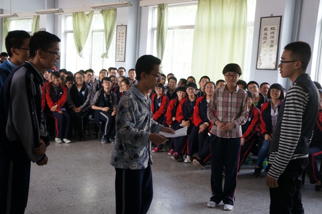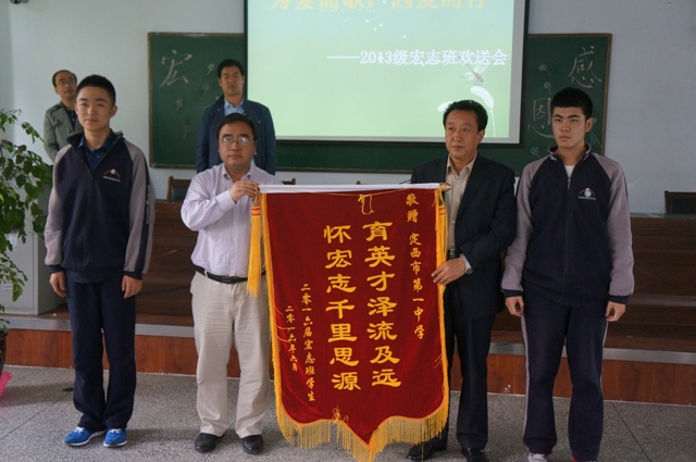 接著,高三宏志班學生代表李嘉軒同學做了熱情洋溢的發(fā)言,用他積極樂觀的態(tài)度感染了在場的每一位宏志生。發(fā)言完畢,高三宏志生與高一、高二宏志生互相贈送禮品,高一、高二宏志生向每位學長贈送了一把傘,傘上印有“宏圖遠志 自強不息”八個字以及蒲公英的圖案,象征著每位宏志生就像一粒蒲公英的種子,攜帶者“蒲公英之約”散布在四方。高三宏志生的學長們則向高一、高二的宏志生贈送了書簽以及他們對孩子們最真誠的祝福。然后,高三宏志生王彪、李嘉軒同學共同演唱了歌曲《Up & Up》,積極向上的曲調振奮了在場的每一位宏志生,高二宏志班小品《吃面》幽默詼諧,將全場氣氛推向高潮,歡送會在高一宏志班《See you again》的歌聲中圓滿結束。