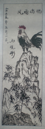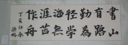 一進畫室,便覺一陣墨香撲鼻而來,似是回到了初漢盛唐那極度豪華又極度優雅的時代。恍然間,舒衣寬袖的才子佳人或倚窗而立,或憑案而坐,執筆揮毫,令人為之一振。環顧四周,時而銘文剛勁,編鐘隱隱而吟;時而草書狂傲,蛟龍騰空而行。《滕王閣》上憑江遠眺,《醉翁亭》里暢懷痛飲;鳥鳴花叢中,好一番《和》諧景象;鶴立池水里,真一派《鶴》傲氣勢, 《大江東去》,盡顯王者氣勢;《天道酬勤》揭示人生真諦。《書山有路勤為徑,學海無涯苦作舟》,告訴我們,需努力拼搏,才會功成名就。虎嘯東嶺,氣勢磅礴;士隱西山,閑淡清雅。梅凌寒而怒放,竹悠然以顯英。《靜物》靜觀世間萬物,《人像》笑看人海沉浮。書法遒勁,若蒼松盤根;繪畫精美,似晚霞炫爛。同學們都沉浸在這儒雅的氛圍之中,心隨著它們,飛向遙遠的藝術國度。