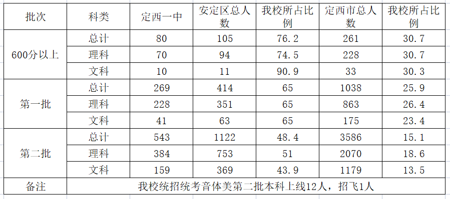 2007年我校與市、區高考成績對照表 時間:2007-07-05 分類:校園新聞 (作者:管理員??來源:本站??) 分享: 上一個: 2007年中考優質生源學校 下一個: 我校今年高考上線人數突破800人大關,再創歷史新高 相關文章 賡續紅色血脈,勇擔育人使命——校黨委組織黨員教師開展學習貫徹黨的二十屆四中全會精神主題黨日活動 聚智兼善育品格 學思踐悟促成長—— 我校教師代表赴兼善中學參加交流活動 定西一中“對話名校 筑夢未來”系列活動|哈爾濱工業大學專場 【區域聯動 眾行致遠】智慧共享 ?智研共贏 定西一中“對話名校 筑夢未來”系列活動|山東大學專場 【“三抓三促”行動進行時】幫扶搭臺連校際 互鑒同行共育人 解碼科技革命浪潮 啟迪創新育人之路—— 福耀科技大學校長王樹國走進定西一中開講 中國科學院大學蒞臨定西市第一中學開展招生宣講工作