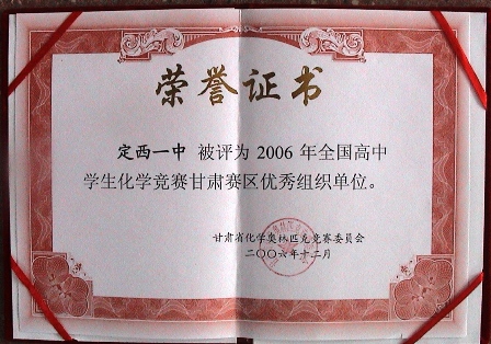 ? 在2006年全國高中學生化學奧林匹克競賽中,我校高三(14)班楊亞非獲全國二等獎,高三(13)班張亞強、白璐、高三(14)班馮波三人獲全國三等獎。化學教研組繆榮生、楊戈中老師分別獲甘肅省化學奧林匹克優秀指導教師二、三等獎。我校獲甘肅省化學奧林匹克優秀組織單位和甘肅省化學奧林匹克明星學校榮譽稱號。