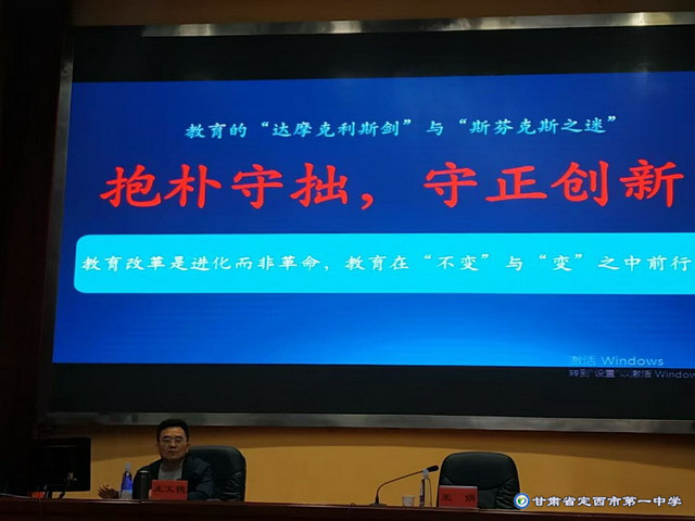 本次培訓由蘭州一中校長王文槐帶領9位學科教師進行授課,培訓項目主要有管理者培訓以及語文、數學、英語、物理、化學、生物、思想政治、歷史、地理等9個學科的相關講座培訓,參加培訓的人員為我校管理人員和各科教師。