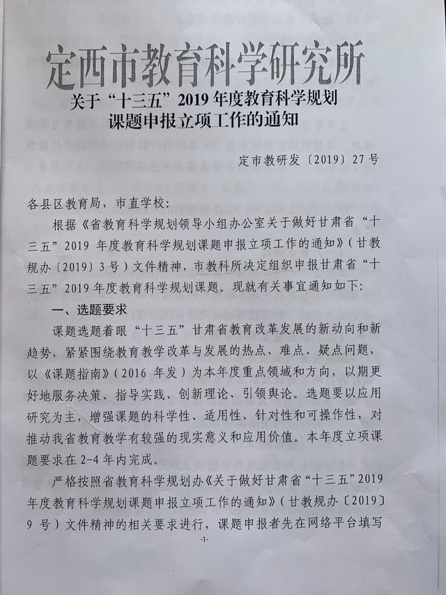 關于“十三五”2019年度教育科學規劃課題申報立項工作的通知 時間:2019-04-23 分類:專業成長 分享: 上一個: 同臺競技展風采 觀摩研討共提高 下一個: 師徒結對傳幫帶 新老攜手促成長 相關文章 定西一中“對話名校 筑夢未來”系列活動|哈爾濱工業大學專場 【區域聯動 眾行致遠】智慧共享 ?智研共贏 【研經悟理 授業傳道】廣學集智逐光行,求變則通耘夢田 定西一中“對話名校 筑夢未來”系列活動|山東大學專場 【“三抓三促”行動進行時】師徒同心展匠心 青藍攜手綻芳華 【“三抓三促”行動進行時】幫扶搭臺連校際 互鑒同行共育人 【“三抓三促”行動進行時】區域聯動促深度交流?攜手并進謀共同發展 【“三抓三促”行動進行時】細耕常規 智研共進
