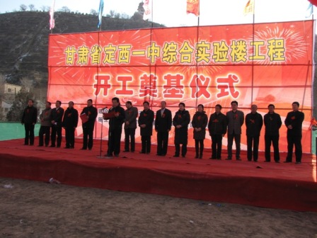2009年12月4日上午11時,我校綜合實驗樓建設工地鼓樂喧天、彩旗飄揚,學校和相關部門隆重舉行綜合實驗樓工程開工奠基儀式。市政府副市長王向機、市發改委主任康彭珍、財政局副局長尹建中、市教育局副局長王儀和市建委、規劃局、定西市城市投資公司的負責人,建筑方和監理負責人,校長董勇,副校長楊繼柏、張子恒、趙榮、魏嵋,黨支部副書記宋淑華,工會主席董萬福和學校相關部門負責人,師生代表等1200多人參加了奠基儀式。 奠基儀式由市教育局副局長王儀主持,市政府副市長王向機宣布定西一中綜合實驗樓工程奠基儀式開始。 董校長向來賓們介紹了學校發展和工程項目實施情況。他說,受“5·12”汶川大地震影響,我校共有14000平方米的建筑受到不同程度破壞,經專家鑒定為危房,須拆除重建。在政府和相關部門的大力支持下,學校經多方努力,爭取到災后重建資金2200萬元,經主管部門同意,決定拆除現4號教學樓,在舊址上新建綜合實驗樓,該工程總建筑面積為12062平方米,由國際級日本建筑大師磯崎新、中國建筑上海設計研究有限公司免費設計。 董校長說,我校綜合實驗樓設計理念先進,室外場地、集中活動空間以及視線控制等空間處理手法能豐富教學樓內部的活動;教學樓主要功能區域的設計采用正圓形的空間形態;中庭的直徑近40M,在中庭中設置大坡道連接層間交通;室外拓展活動場所的中庭坡道因為有了學生的自由活動而使整棟教學樓氣氛隨之活躍,同時也成了展示學生活動的虛擬舞臺。董校長還向大家介紹了工程設計的經過,圖紙報送、審核、批復和工程投標等方面的情況。 我校綜合實驗樓由甘肅正立建筑安裝(集團)有限責任公司承建,由隴中監理公司實施工程監理,預計在2010年建成并投入使用。 施工方和監理方代表做了表態發言,奠基儀式在熱烈的掌聲和歡快的鼓樂聲中順利結束。