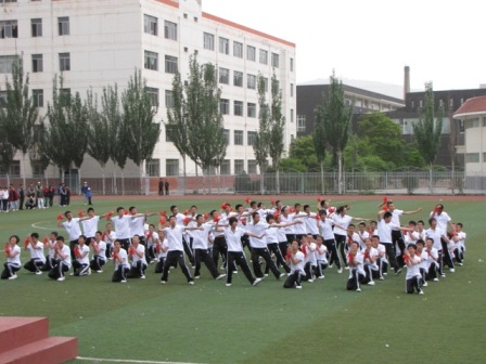 ????? ?為了進一步強化我校藝術教育工作,促進學生健康、全面、和諧的發展,提高學生身體素質和審美情趣,營造良好的校園文化環境,5月23日下午,我校在大操場舉行了高一年級校園集體舞比賽。校長盛淑蘭,黨委書記張東銳、副書記宋淑華,副校長魏嵋、趙榮,工會主席董萬福和體音美教研組部分教師擔任評委。高一年級18個班級的1000多名學生參加了比賽。