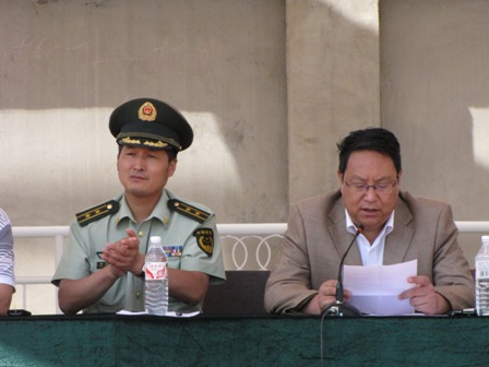 匯操表演結束后,董校長在總結講話,他首先代表校黨委、校行政向參加軍訓的教官和同學表示親切的慰問,向多年來承擔我校軍訓任務的武警定西市支隊表示衷心的感謝。董校長指出,軍訓是每一名高一新生必須參加的一項集體教育活動,也是新生入學的必備條件之一。作為學校德育工作的特殊形式,軍訓在培養和提高學生素質方面發揮著其他教育形式不可替代的作用。他要求全體同學珍惜這次軍訓經歷,銘記所學到的知識和做人的道理,珍惜高中三年的學習生活,努力拼博、奮發進取,不斷磨練自己,不斷提高綜合素質,完善知識結構,努力將自己塑造成為一名適應社會發展的合格建設者和可靠接班人,把一中學子良好的素質、美好的形象展現給社會。????? ?