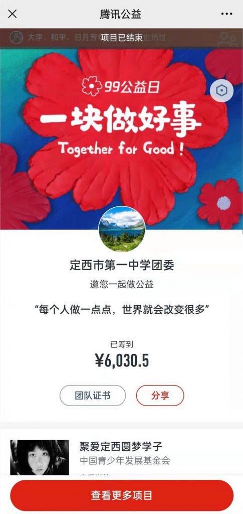 “99公益日”來臨之際,為響應國家9月5日中華慈善日和市青基會發起的“聚愛定西圓夢學子”籌款計劃的號召,培養廣大師生參與公益事業的使命感和責任感,9月7-9日,我校團委在團委書記安常勝的組織下發起了一年一度的“99公益日”線上愛心籌捐活動。