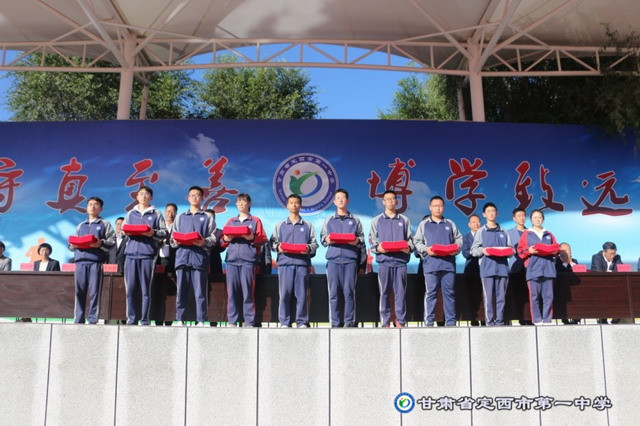 ? ? 劉書記介紹了參加開學(xué)典禮的學(xué)校領(lǐng)導(dǎo),校長楊繼柏,副校長劉順義、王國仁、田永強,黨委副書記李愛軍,工會主席吳有海和各處室負責(zé)人以及年級主任參加開學(xué)典禮。副校長劉順義宣讀《定西市第一中學(xué)關(guān)于表彰2019—2020學(xué)年度先進班集體、三好學(xué)生、優(yōu)秀學(xué)生干部的決定》。黨委副書記李愛軍宣讀《定西市第一中學(xué)團委關(guān)于表彰2019—2020學(xué)年度優(yōu)秀團干部、優(yōu)秀團員的決定》。學(xué)校領(lǐng)導(dǎo)為獲獎班級和個人頒發(fā)獎狀和榮譽證書。
