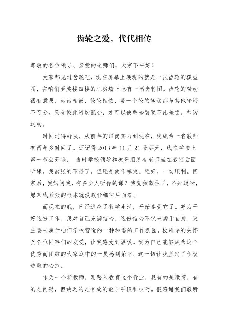 齒輪之愛,代代相傳 時(shí)間:2015-12-18 分類:師德師風(fēng) 分享: 上一個(gè): 用良知守望這方凈土 下一個(gè): 潤之以愛,育之以教 相關(guān)文章 【“三抓三促”行動(dòng)進(jìn)行時(shí)】我的教育人生 師德集中學(xué)習(xí)教育系列微黨課 師德集中學(xué)習(xí)教育系列微黨課 師德集中學(xué)習(xí)教育系列微黨課 滿懷信心向未來 努力奮斗譜新篇 立德樹人奮進(jìn)擔(dān)當(dāng) 教育脫貧托舉希望 傳遞教育正能量 弘揚(yáng)師德正師風(fēng) 強(qiáng)師德 鑄師魂