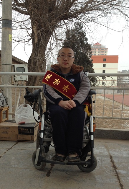 魏祥,2014級13班學生。他雖然沒有同于常人自由健康的軀體,卻克服了常人難以克服的困難,在知識的天空中快樂地翱翔。他熱愛生命,不懈進取,向上的力量和向前的斗志,助他邁過學習中的道道門檻。在2014—2015學年度第一學期的高一數學、化學競賽中,他都獲得第一名。即使身上有著許多閃亮的光環,他依舊熱心助人,并在班級中組織了數學興趣小組。他的精彩好似天空中璀璨的星輝,他的進取,好似那風雪中指路的明燈,給了我們榜樣的力量。他以“成為對社會有用的人”為人生理想。他的人生格言是:沒有理想,何必遠方,既然選擇了,就不要輕易放棄。