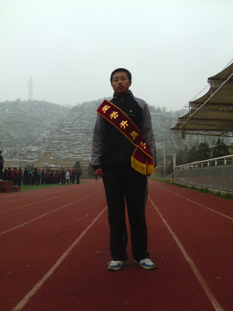 今天的榮譽升旗手是高二(15)班的張永剛同學。在2013年入學考試中他的成績僅僅高出錄取線4分,經過一年多的刻苦學習,在高二期中考試中取得班級第一,年級第五的成績。