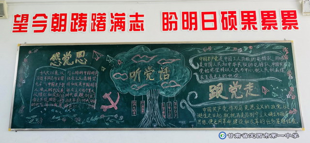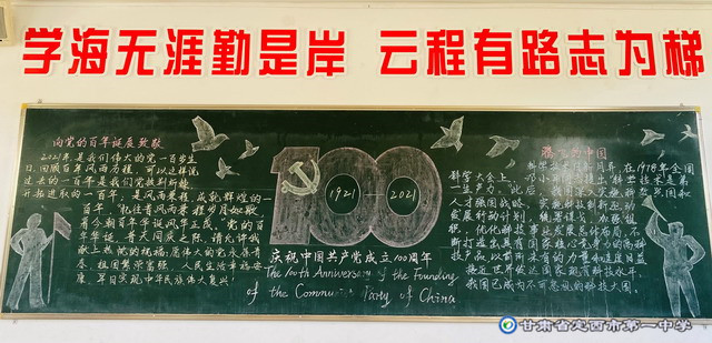 7月1日上午8時(shí),慶祝中國(guó)共產(chǎn)黨成立100周年大會(huì)在北京天安門廣場(chǎng)隆重舉行,在校團(tuán)委的組織下,定西一中師生收聽收看大會(huì)盛況,回顧中國(guó)共產(chǎn)黨百年奮斗的光輝歷程,展望中華民族偉大復(fù)興的光明前景。同時(shí),各團(tuán)支部繪制黑板報(bào)祝福偉大的中國(guó)共產(chǎn)黨成立一百周年!祝福偉大的祖國(guó)繁榮富強(qiáng)!