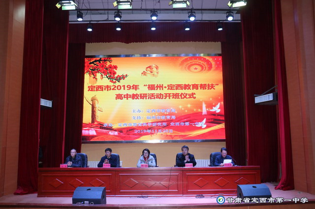 冬月的定西一中校園,花草卸去綠裝,忍冬紅艷奪目,校門內馬路兩邊的櫥窗亮麗醒目,新整修的花園精致美觀。整個校園既充滿活力,又呈現出自然的寧靜之美。11月28日,定西市2019年“福州?定西教育幫扶”高中教研活動在我校如期舉行。福州市教育區黨組成員、副局長陳穎,福州市教育局人事處處長馬勇,福州市教育研究院院長林明華,率領福州名師來定西講課、說課、做講座,來自定西市各區縣500多名高中教師觀摩了福州、定西兩地同仁高水平的同課異構示范課,并研討交流。