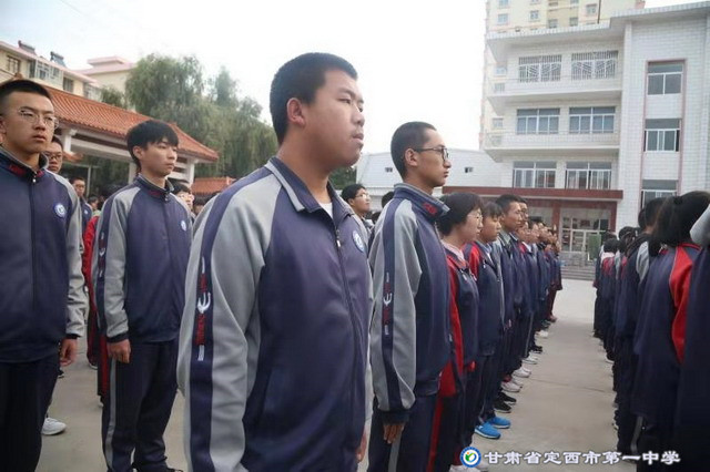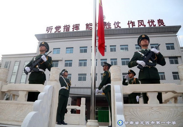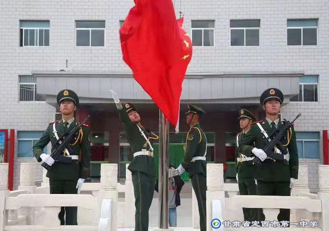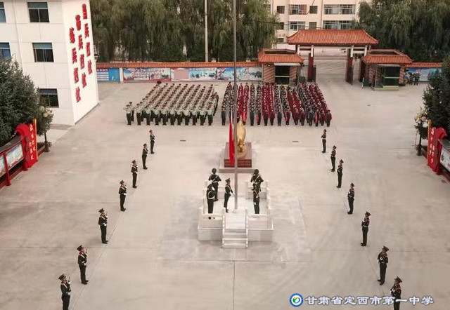 上午7時,高二年級300多名學(xué)生迎著清晨第一縷陽光,走進武警定西支隊機關(guān),與支隊機關(guān)全體官兵一同升國旗、唱國歌。
