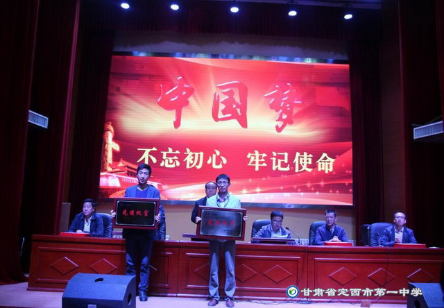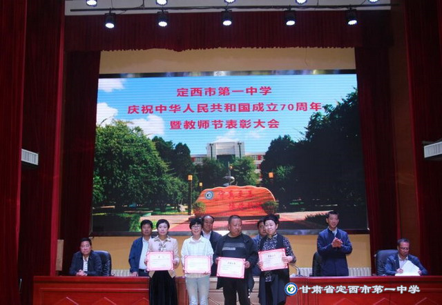 黨委副書記李愛軍宣讀了《定西市第一中學關于表彰2018-2019學年度先進集體和優秀個人的決定》,與會領導向先進處室,優秀教研組、備課組和優秀班主任、優秀教師及先進工作者頒發了榮譽證書。