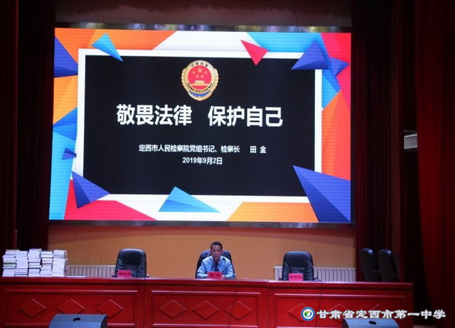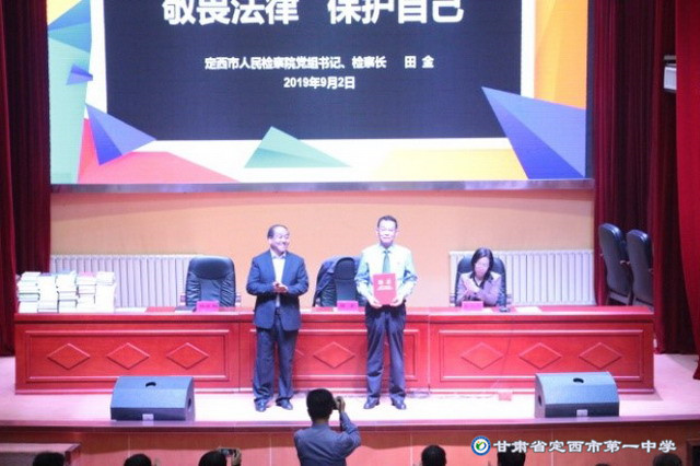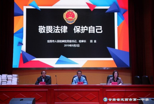 金秋九月,丹桂飄香,又是一年開學季。9月2日,新學期伊始,定西市人民檢察院黨組書記、檢察長田金在市教育局黨組書記、局長盛淑蘭的陪同下來到我校,開展“法治進校園”開學第一課宣講活動。
