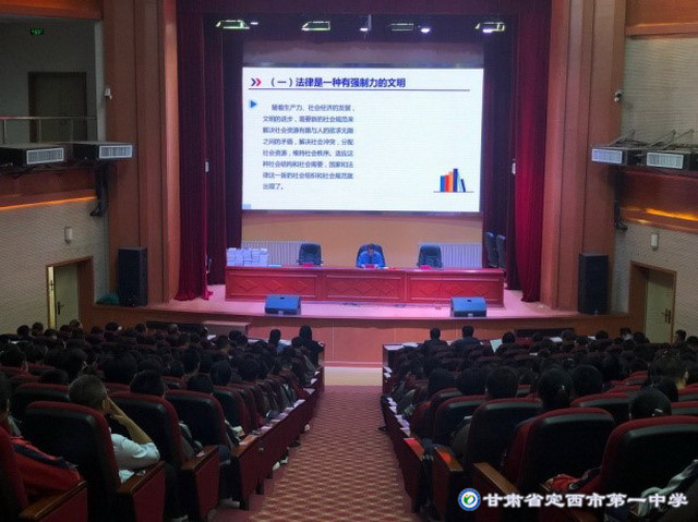 在主題為“敬畏法律,保護自己”的開學第一堂法治教育課上,田檢察長結合辦案實際,從法律是什么、網絡、毒品、性侵、校園欺凌五個方面對同學們進行了講授。田檢察長用一個個典型的人物,一件件具體的事例,以案釋法,以法論事。他的講授深入淺出、鞭辟入里,給同學們上了一堂生動形象、精彩紛呈的法治教育課,現場不時傳來師生們陣陣熱烈的掌聲。田檢察長強調,檢察院的工作,就是讓犯罪分子受到制裁,讓老百姓得到保護。檢察院的未檢部門,就是為未成年人健康成長保駕護航的。他動情地說道,受聘為法治副校長,成為定西一中的一員,感到很榮幸,也很自豪。特別是來到美麗的校園,見到充滿朝氣的同學們,很開心,感覺自己也有了青春活力。最后,田檢察長語重心長地指出,安全的防范意識比防盜門保險,同學們的安全和健康是第一位的,沒有安全和健康,其他一切都是水中花、鏡中月。因此,大家在今后的學習和生活中,要時刻樹牢安全和健康兩根弦,快樂生活、快樂學習。他殷切希望同學們志存高遠,勤奮學習, 健康身心,追求卓越。