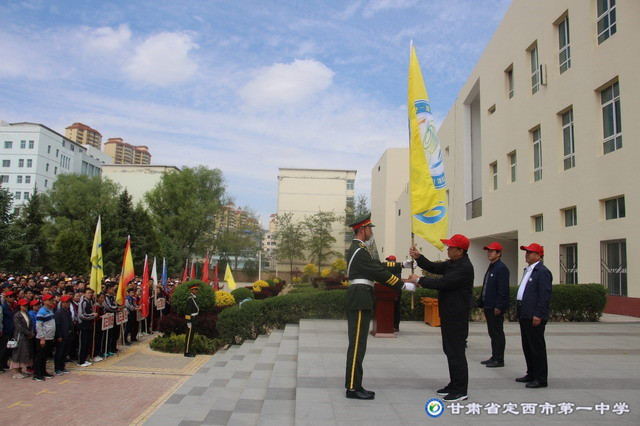 活動現(xiàn)場二:學(xué)校領(lǐng)導(dǎo)授旗