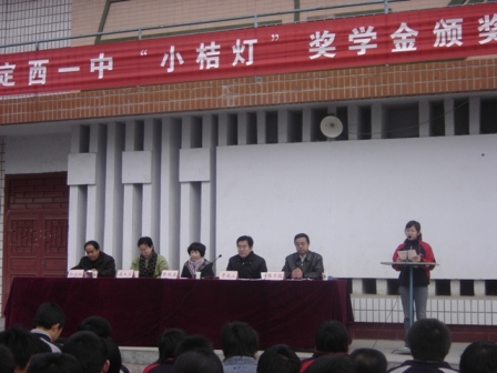 今天是一個大喜的日子,我校全體師生以無比感激、無比振奮的心情,迎來 了同濟大學張佩英教授,經張教授牽線,由復星集團副總裁談劍女士捐資設立的定西一中“小桔燈獎學金”頒發儀式也在這里隆重舉行,在此,我謹代表學校向為寒 門學子奉獻愛心的張佩英教授、談劍副總裁表示最崇高的敬意!向關心和支持我校教育教學工作的各級領導、同志們、朋友們表示最誠摯的感謝!