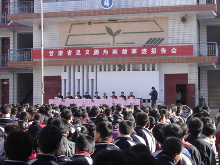 今天,我們在這里隆重舉行全省見義勇為英雄事跡報告團定西市第一中學報 告會,大家聆聽了七位見義勇為先進人物的英雄事跡,他們的崗位、經歷雖然不同,但卻有著共同之處,這就是當人民群眾的生命財產受到威脅時,置個人生死于度 外,表現出不怕犧牲、挺身而出的英雄氣概。他們懷著高度的社會責任感,履行了普通公民維護社會治安的光榮義務,在正義與邪惡的較量中,譜寫了一曲又一曲可 歌可泣的英雄贊歌,展現了新時期英雄人物的精神風貌,“見義勇為”的意義在他們身上得到了最好的詮釋和充分的體現。