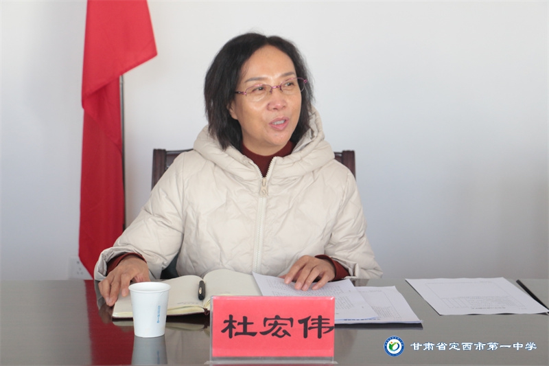 聽取匯報后,杜宏偉同志作了指導(dǎo)講話。她說,定西一中在黨史學(xué)習(xí)教育中認真貫徹落實中央和省、市委的安排部署,能夠聚焦聚力黨史學(xué)習(xí)教育的主體責任,第一責任人的責任壓得實,領(lǐng)導(dǎo)干部的帶頭示范作用發(fā)揮得好,把黨史學(xué)習(xí)教育作為落實立德樹人根本任務(wù)和學(xué)校高質(zhì)量發(fā)展的內(nèi)在要求,與立德樹人、隊伍建設(shè)、學(xué)生成才、教學(xué)研究等重點工作結(jié)合起來,領(lǐng)導(dǎo)有力、組織有序、富有成效。學(xué)校學(xué)習(xí)氛圍濃厚,基層宣講中各個群體形成合力,形式豐富多樣,“我為群眾辦實事”實踐活動用心用情用力,取得了良好效果。同時,她對我校下階段工作開展提出了指導(dǎo)性意見建議。