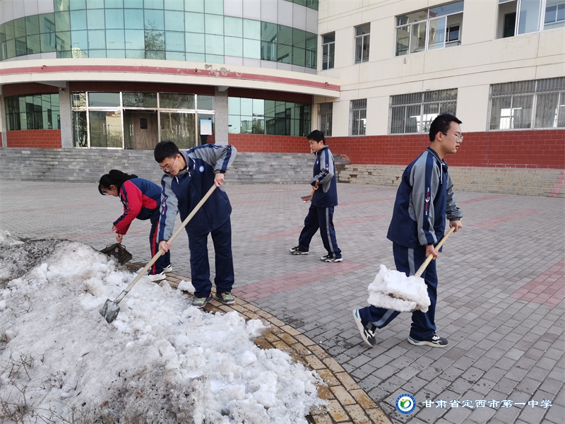 高一、高二年級志愿者們開展了“我為校園添美麗”的積雪清掃活動和報刊欄的清洗活動。將連日來四處堆積的積雪積水全部清理干凈,報刊欄也擦得煥然一新,整個校園顯現出了新一年開始的新面貌。