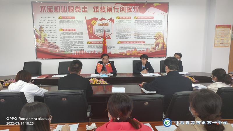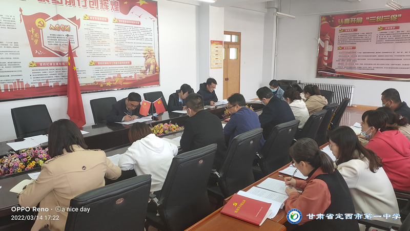 2022年3月14日17:00,政史地英黨支部在辦公樓406室組織召開了2021年度組織生活會及民主評議黨員大會。學校黨委書記劉順義同志及支部全體黨員參加會議,支部書記李曉燕同志主持會議。