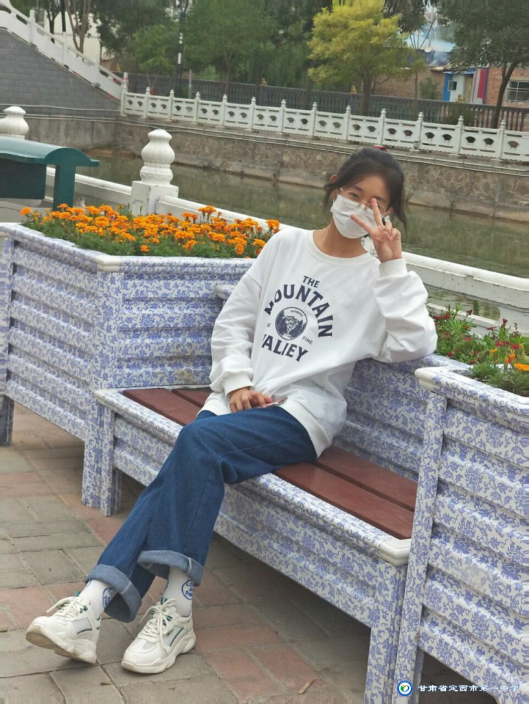 她作為班級文藝宣傳委員,老師交給她的任務總是不折不扣的完成,并做得有條不紊。在生活中,她樂于助人,活潑樂觀,尊重師長,對同學以誠相待。凡是同學在學習和生活過程中遇到困難時有求必應,熱心相助。她從小在良好家庭、學校的教育下,養成愛勞動的好習慣。當學校班級組織各項活動時,即便是自己并非擅長的領域,也勇于嘗試,積極參與?!扒啻簺]有選擇,只有試一試”是她的生活態度。在高一年級“請黨放心,強國有我”演講比賽中獲得三等獎,在定西一中80周年校慶藝術節中組織排練校園舞蹈,憑借自我優秀的領導組織能力和大家共同的辛苦付出,最終取得了高一年級組優秀獎的不錯成績。