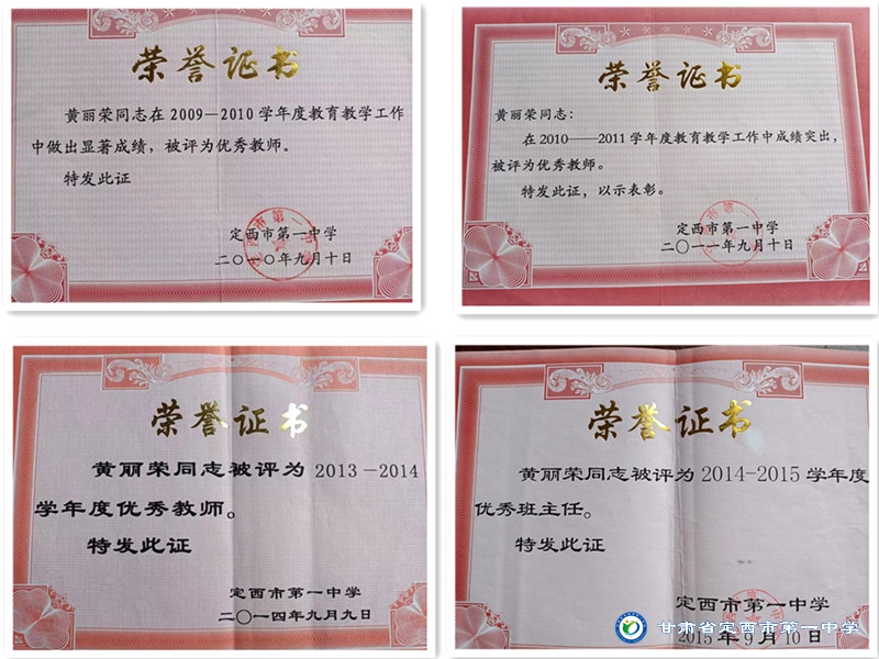 黃麗榮老師從教以來,對教學工作和班主任工作始終飽含熱情,認真對待。在班級管理中能夠與時俱進,結合現代中學生的成長規律,處處為學生著想?!芭惆槭亲詈玫墓芾?,言傳身教是最好的教育”這是她最深切的體會。日復一日,年復一年的在繁忙中陪伴著一屆又一屆的學生。辛勤的付出換來了豐厚的回報,她所帶班級教學成績名列前茅,有多名學生考入985院校,2017年有一名學生取得了“定西市高考文科狀元”的好成績。