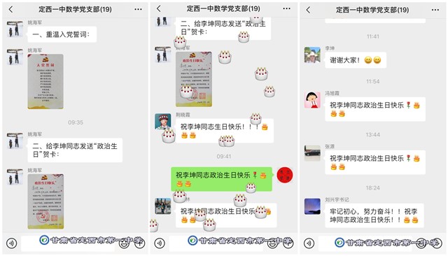 贈送一份電子賀卡 “數學黨支部祝李坤同志政治生日快樂!”,黨支部在支部微信群分享一張精心制作的電子生日賀卡。