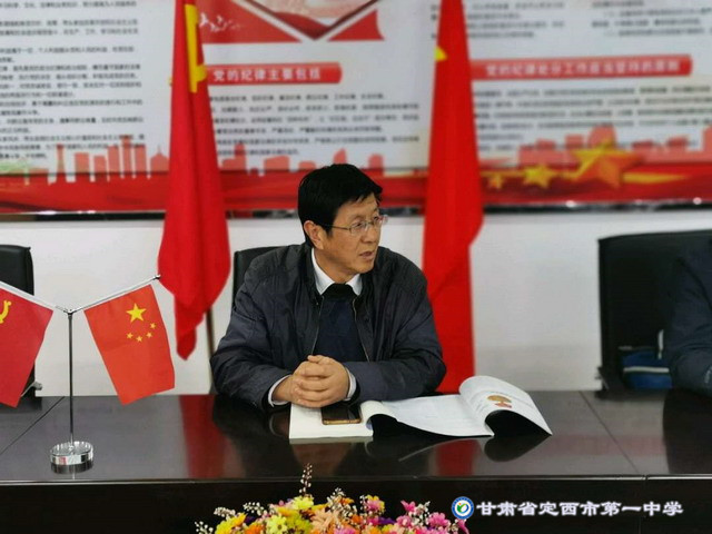 為深入學習貫徹黨的十九大精神,進一步提高黨員綜合素質,更好地發揮黨支部的戰斗堡壘作用和黨員在教育教學工作中的先鋒模范作用,10月9日,中共定西一中數學黨支部組織全體黨員積極開展了“不忘初心,牢記使命,爭做新時代‘四有’好老師”黨員主題活動。活動由支部書記趙玉城同志主持。