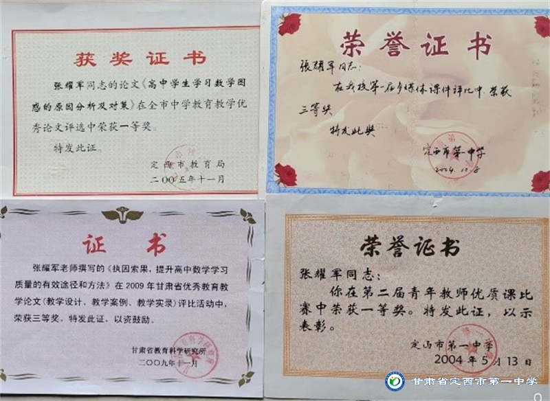 教研并重,相得益彰。在教中研,在研中教,他經常研究學生,研究教法,研究高考,教研并重,及時把握學科改革趨勢,潛心鉆研課程發展方向,取得了良好成績。撰寫的論文《執果索因,提高高中數學學習質量的有效途徑和方法》在2009年甘肅省優秀教育教學論文評比活動中榮獲三等獎,《高中學生學習數學困惑的原因分析及對策》在2005年全市中學教育教學論文評選中榮獲一等獎,在我校第二屆青年教師優質課比賽中榮獲一等獎,在我校第一屆多媒體課件評比中榮獲三等獎。有多篇論文發表在國家級及省級期刊上。并先后多次被評為定西一中優秀班主任、優秀教師和優秀黨員。