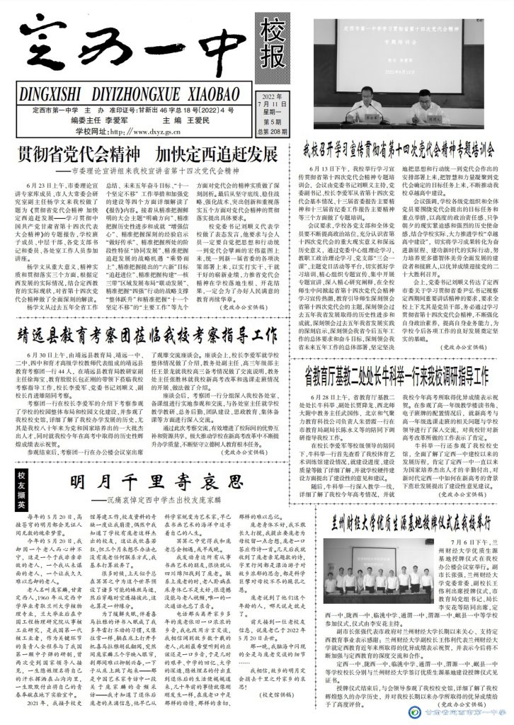 定西一中校報2022年第五期 時間:2022-07-12 分類:校報校刊 定西一中校報2022年第五期下載 分享: 上一個: 定西一中校報2022年第四期 下一個: 定中教研——校刊2022年第一期 相關文章 【“三抓三促”行動進行時】定西一中校報2025年第八期 【“三抓三促”行動進行時】定西一中校報2025年第七期 【“三抓三促”行動進行時】定西一中校報2025年第六期 【“三抓三促”行動進行時】定西一中校報2025年第五期 【“三抓三促”行動進行時】定西一中校報2025年第四期 【“三抓三促”行動進行時】定西一中校報2025年第三期 【“三抓三促”行動進行時】定西一中校報2025年第二期 【“三抓三促”行動進行時】定西一中校報2025年第一期