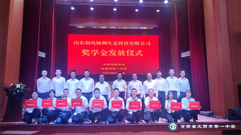 山東和風綠洲生態科技有限公司捐贈的這筆獎學金用于獎勵在2022年普通高考中取得優異成績的我市優秀應屆畢業生。全市共獎勵60名,其中安定區共有16名同學受到獎勵,我校16名學生獲此殊榮。