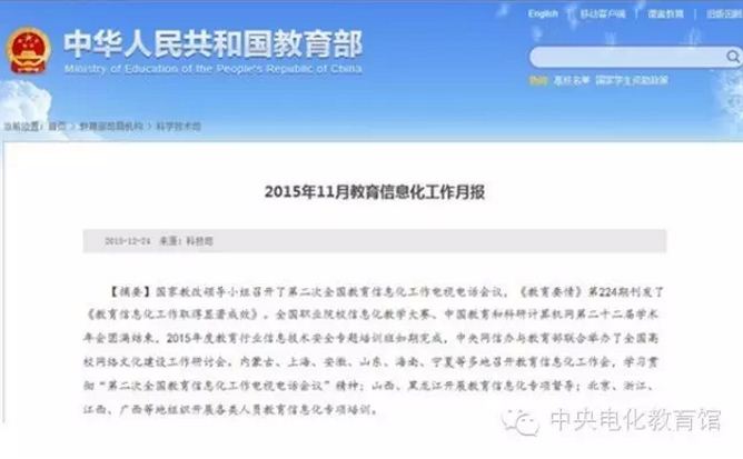 教育部2015年11月教育信息化工作月報