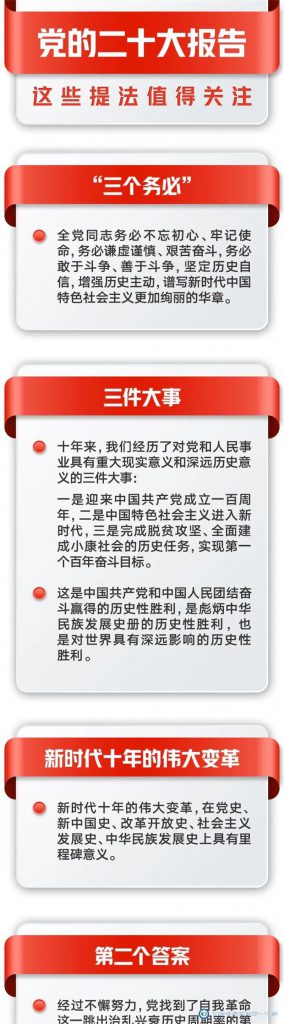 黨的二十大報告全文發布,這些提法值得關注! 時間:2022-10-27 分類:聚焦二十大 (來源:人民日報客戶端) 分享: 上一個: 新華社受權發布:中國共產黨章程 下一個: 習近平:全面學習把握落實黨的二十大精神 奮力奪取全面建設社會主義現代化國家新勝利 相關文章 “躬耕教壇 強國有我”系列微黨課宣講 師德集中學習教育系列微黨課 師德集中學習教育系列微黨課 師德集中學習教育系列微黨課 大思政課開講啦 大思政課開講啦 大思政課開講啦 大思政課開講啦