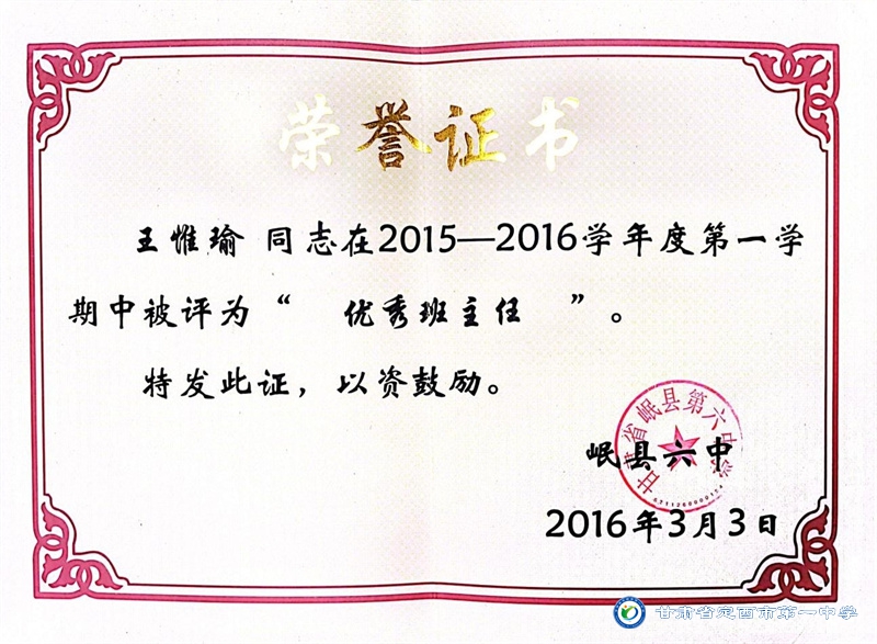優秀班主任——王惟瑜